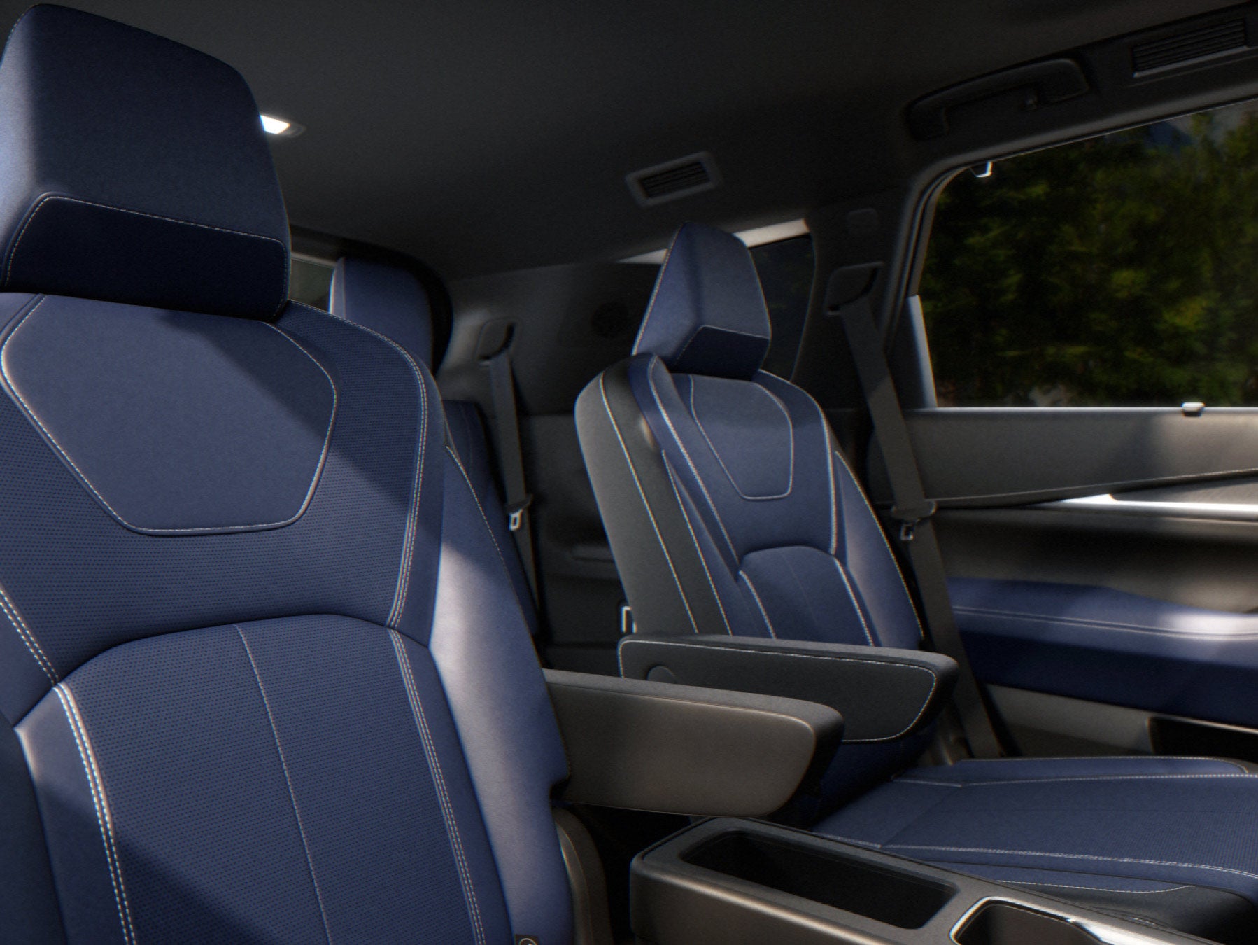 + - Exclusive TailorFit® - appointed Dusk Blue seating with standard second-row captain’s chairs