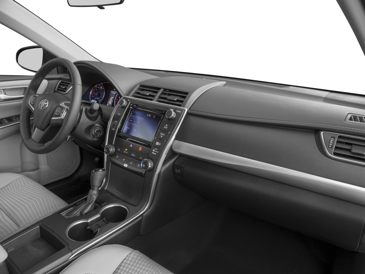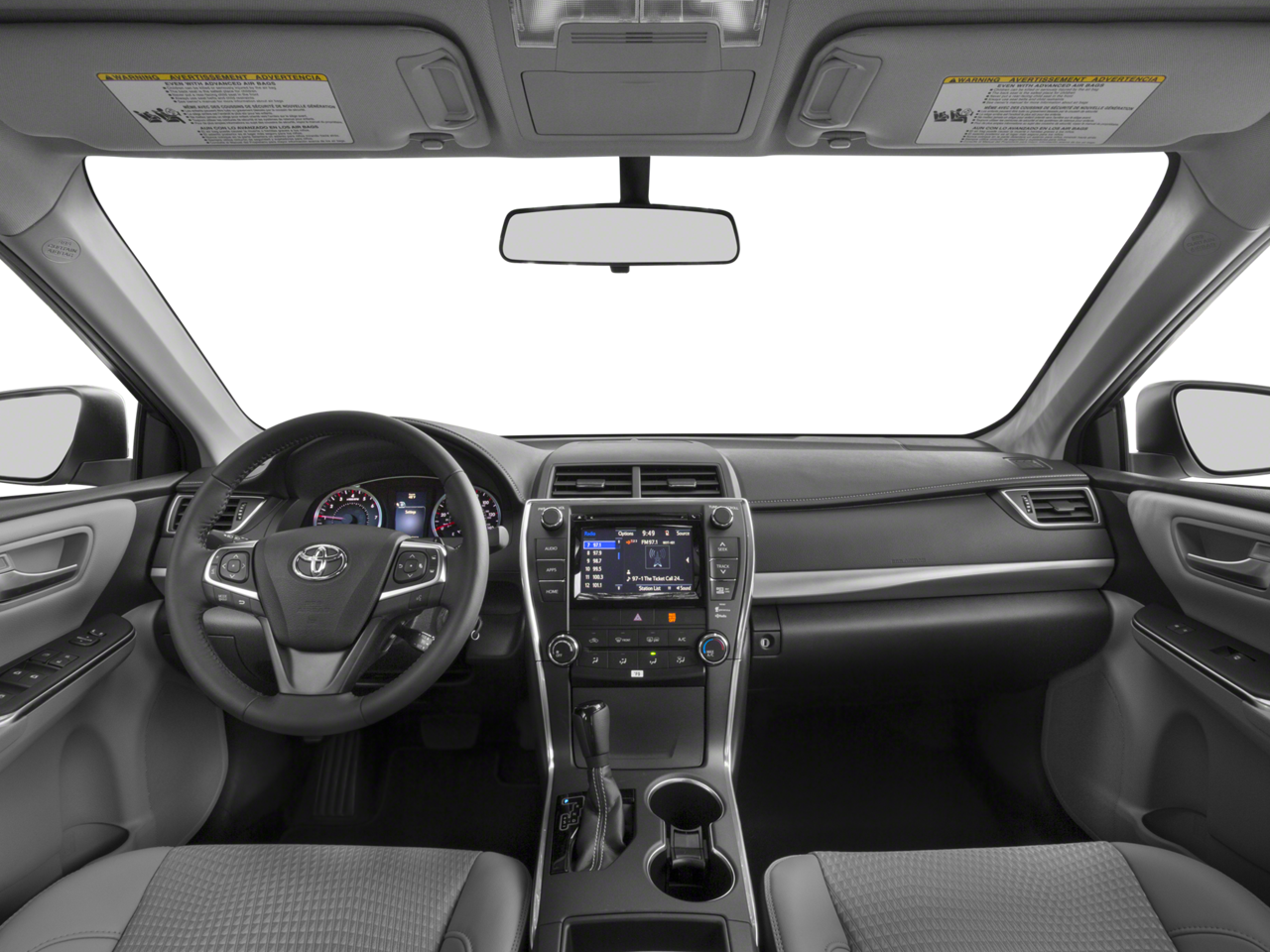 This 2016 Super White Toyota Camry SE FWD is well equipped and includes these features and benefits: Ash/Black Cloth, 4-Wheel Disc Brakes, 6 Speakers, 7.0J x 17 Alloy Wheels, ABS brakes, Air Conditioning, Alloy wheels, AM/FM radio, Brake assist, Bumpers: body-color, CD player, Delay-off headlights, Driver door bin, Driver vanity mirror, Dual front impact airbags, Dual front side impact airbags, Electronic Stability Control, Exterior Parking Camera Rear, Fabric Seat Trim, Four wheel independent suspension, Front anti-roll bar, Front Bucket Seats, Front Center Armrest, Front reading lights, Fully automatic headlights, Heated door mirrors, Illuminated entry, Knee airbag, Leather steering wheel, Low tire pressure warning, Occupant sensing airbag, Outside temperature display, Overhead airbag, Overhead console, Panic alarm, Passenger door bin, Passenger vanity mirror, Power door mirrors, Power driver seat, Power steering, Power windows, Radio: Entune Audio, Radio: Entune Audio Plus, Rear anti-roll bar, Rear seat center armrest, Rear side impact airbag, Rear window defroster, Remote keyless entry, Speed control, Speed-sensing steering, Split folding rear seat, Spoiler, Sport steering wheel, Steering wheel mounted audio controls, Tachometer, Telescoping steering wheel, Tilt steering wheel, Traction control, Trip computer, and Variably intermittent wipers. Ash/Black Cloth.