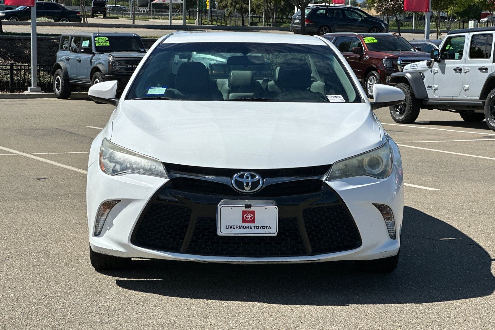 This 2016 Super White Toyota Camry SE FWD is well equipped and includes these features and benefits: Camry SE, 4D Sedan, 2.5L I4 SMPI DOHC, 6-Speed Automatic, FWD, Super White, Black Cloth, 4-Wheel Disc Brakes, 6 Speakers, 7.0J x 17 Alloy Wheels, ABS brakes, Air Conditioning, Alloy wheels, AM/FM radio, Brake assist, Bumpers: body-color, CD player, Delay-off headlights, Driver door bin, Driver vanity mirror, Dual front impact airbags, Dual front side impact airbags, Electronic Stability Control, Exterior Parking Camera Rear, Fabric Seat Trim, Four wheel independent suspension, Front anti-roll bar, Front Bucket Seats, Front Center Armrest, Front reading lights, Fully automatic headlights, Heated door mirrors, Illuminated entry, Knee airbag, Leather steering wheel, Low tire pressure warning, Occupant sensing airbag, Outside temperature display, Overhead airbag, Overhead console, Panic alarm, Passenger door bin, Passenger vanity mirror, Power door mirrors, Power driver seat, Power steering, Power windows, Radio: Entune Audio, Radio: Entune Audio Plus, Rear anti-roll bar, Rear seat center armrest, Rear side impact airbag, Rear window defroster, Remote keyless entry, Speed control, Speed-sensing steering, Split folding rear seat, Spoiler, Sport steering wheel, Steering wheel mounted audio controls, Tachometer, Telescoping steering wheel, Tilt steering wheel, Traction control, Trip computer, and Variably intermittent wipers. Bluetooth®, BACK UP CAMARA, Camry SE, 4D Sedan, 2.5L I4 SMPI DOHC, 6-Speed Automatic, FWD, Super White, Black Cloth, 4-Wheel Disc Brakes, 6 Speakers, 7.0J x 17 Alloy Wheels, ABS brakes, Air Conditioning, Alloy wheels, AM/FM radio, Brake assist, Bumpers: body-color, CD player, Delay-off headlights, Driver door bin, Driver vanity mirror, Dual front impact airbags, Dual front side impact airbags, Electronic Stability Control, Exterior Parking Camera Rear, Fabric Seat Trim, Four wheel independent suspension, Front anti-roll bar, Front Bucket Seats, Front Center Armrest, Front reading lights, Fully automatic headlights, Heated door mirrors, Illuminated entry, Knee airbag, Leather steering wheel, Low tire pressure warning, Occupant sensing airbag, Outside temperature display, Overhead airbag, Overhead console, Panic alarm, Passenger door bin, Passenger vanity mirror, Power door mirrors, Power driver seat, Power steering, Power windows, Radio: Entune Audio, Radio: Entune Audio Plus, Rear anti-roll bar, Rear seat center armrest, Rear side impact airbag, Rear window defroster, Remote keyless entry, Speed control, Speed-sensing steering, Split folding rear seat, Spoiler, Sport steering wheel, Steering wheel mounted audio controls, Tachometer, Telescoping steering wheel, Tilt steering wheel, Traction control, Trip computer, Variably intermittent wipers.