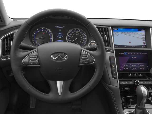 This 2017 Majestic White INFINITI Q50 2.0t Premium RWD is well equipped and includes these features and benefits: 16 Speakers, 17 x 7.5 Aluminum Alloy Wheels, 4-Wheel Disc Brakes, ABS brakes, Activation Disclaimer, Air Conditioning, Alloy wheels, AM/FM radio: SiriusXM, Anti-whiplash front head restraints, Auto-dimming Rear-View mirror, Automatic temperature control, BOSE Centerpoint Simulated Surround, Brake assist, Bumpers: body-color, CD player, Compass, Delay-off headlights, Driver door bin, Driver vanity mirror, Dual front impact airbags, Dual front side impact airbags, Electronic Stability Control, Four wheel independent suspension, Front anti-roll bar, Front Bucket Seats, Front Center Armrest, Front dual zone A/C, Front fog lights, Front reading lights, Fully automatic headlights, Garage door transmitter: HomeLink, Heated door mirrors, Illuminated entry, INFINITI Studio on Wheels by Bose, Leather Shift Knob, Leather steering wheel, Literature Kit, Low tire pressure warning, Occupant sensing airbag, Outside temperature display, Overhead airbag, Overhead console, Panic alarm, Passenger door bin, Passenger vanity mirror, Power door mirrors, Power driver seat, Power moonroof, Power passenger seat, Power steering, Power windows, Premium Leatherette Seating Surfaces, Premium Paint, Radio data system, Radio: AM/FM/CD w/MP3 Playback Capability, Rain sensing wipers, Rear anti-roll bar, Rear reading lights, Rear seat center armrest, Rear window defroster, Remote keyless entry, Security system, Speed control, Speed-sensing steering, Speed-Sensitive Wipers, Splash Guards, Steering wheel mounted audio controls, Tachometer, Telescoping steering wheel, Tilt steering wheel, Traction control, Trip computer, Turn signal indicator mirrors, and Variably intermittent wipers.