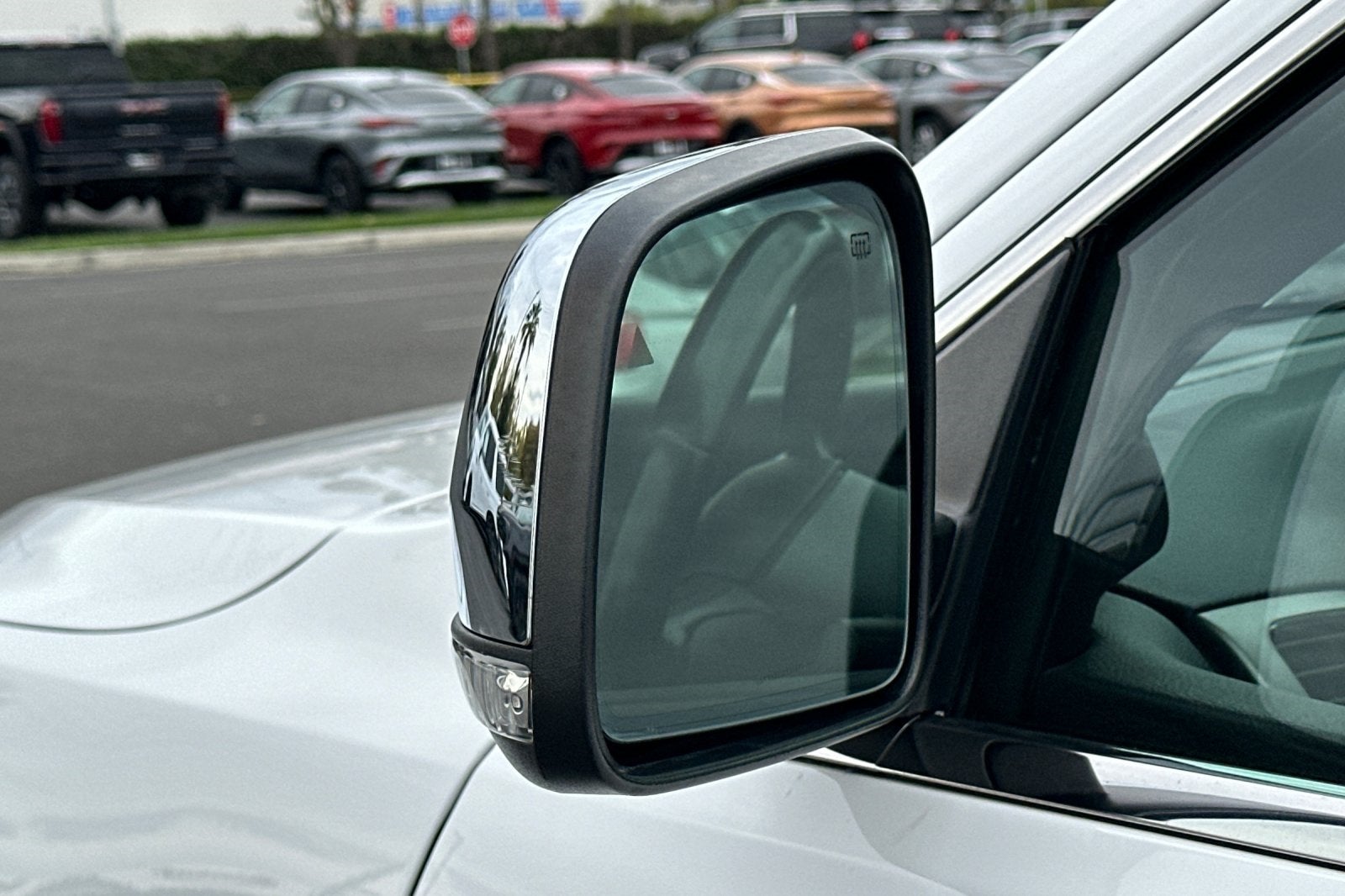 - Chrome Power w/Tilt Down Heated Side Mirrors w/Driver Auto Dimming, Manual Folding and Turn Signal Indicator
