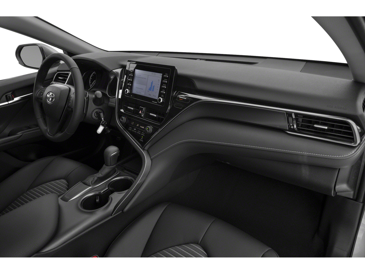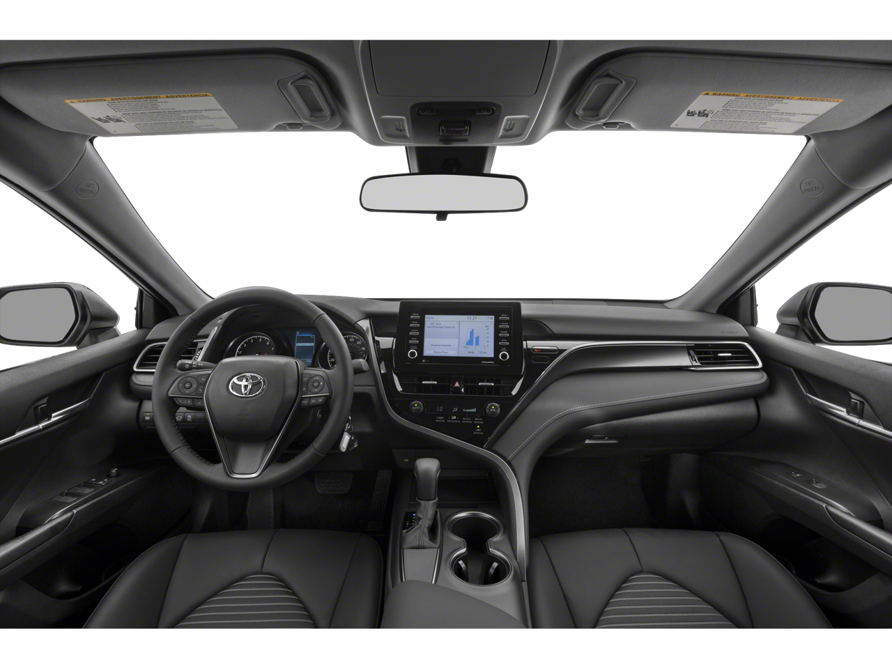 This 2022 White Toyota Camry SE FWD is well equipped and includes these features and benefits: Convenience Package (Auto-Dimming Rear-View Mirror, HomeLink, and Smart Key System w/Push Button Start), Black Cloth, 4-Wheel Disc Brakes, 6 Speakers, ABS brakes, Air Conditioning, Alloy wheels, AM/FM radio: SiriusXM, Apple CarPlay/Android Auto, Auto High-beam Headlights, Automatic temperature control, Blind Spot Monitor w/Rear Cross Traffic Alert, Brake assist, Bumpers: body-color, Delay-off headlights, Driver door bin, Driver vanity mirror, Dual front impact airbags, Dual front side impact airbags, Electronic Stability Control, Emergency communication system: Safety Connect with 1-year trial, Exterior Parking Camera Rear, Fabric Seat Trim w/Sport SofTex, Four wheel independent suspension, Front anti-roll bar, Front Bucket Seats, Front Center Armrest, Front dual zone A/C, Front reading lights, Fully automatic headlights, Heated door mirrors, Illuminated entry, Knee airbag, Low tire pressure warning, Occupant sensing airbag, Outside temperature display, Overhead airbag, Overhead console, Panic alarm, Passenger door bin, Passenger vanity mirror, Power door mirrors, Power driver seat, Power steering, Power windows, Radio data system, Radio: AM/FM Audio System, Rear anti-roll bar, Rear seat center armrest, Rear side impact airbag, Rear window defroster, Remote keyless entry, Security system, Speed control, Speed-sensing steering, Split folding rear seat, Spoiler, Steering wheel mounted audio controls, Tachometer, Telescoping steering wheel, Tilt steering wheel, Traction control, Trip computer, Turn signal indicator mirrors, Variably intermittent wipers, and Wheels: 8.0J x 18 Black Machined-Finish Alloy.