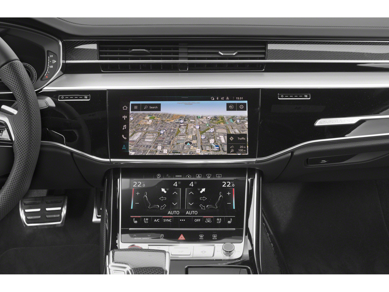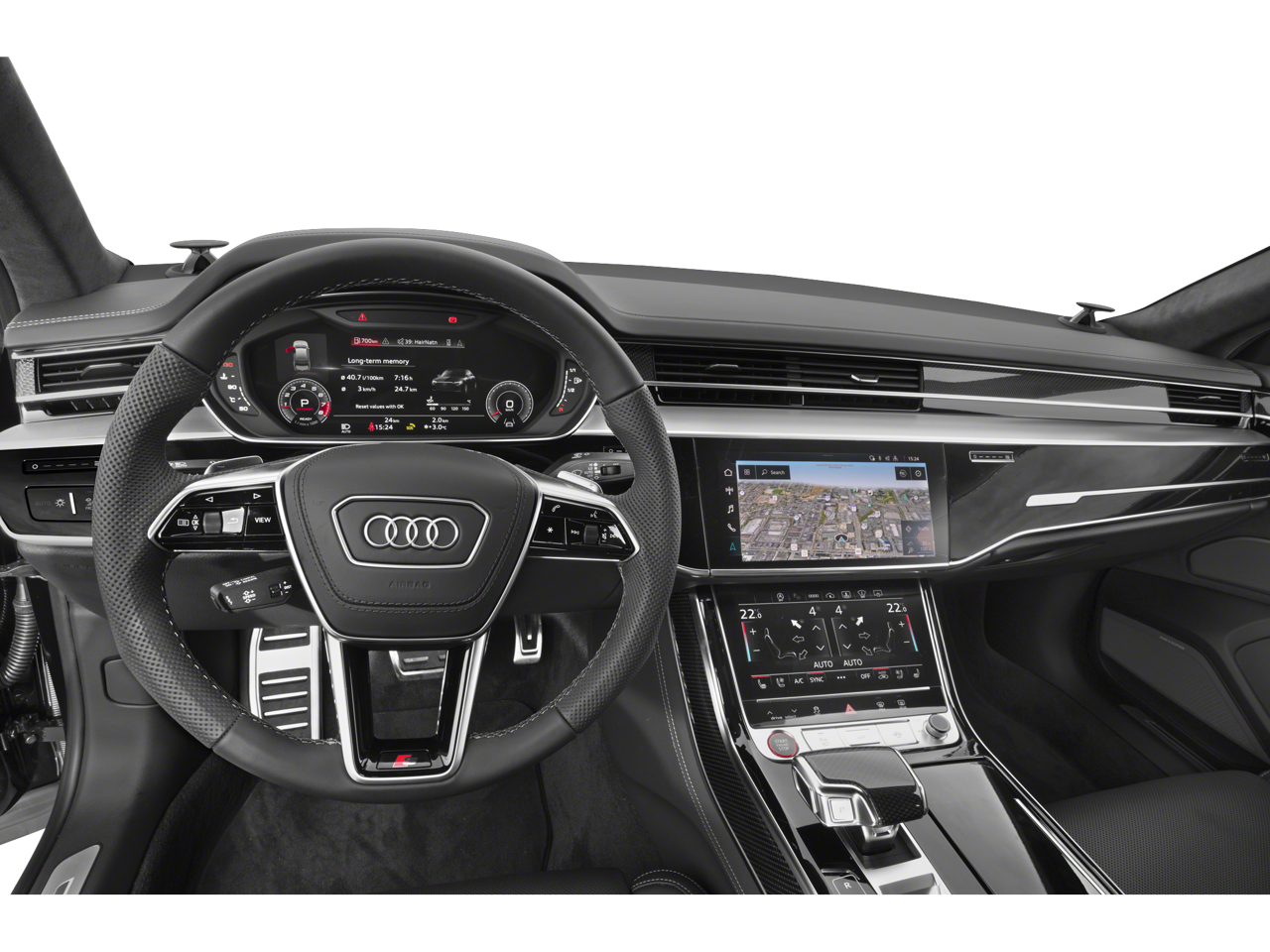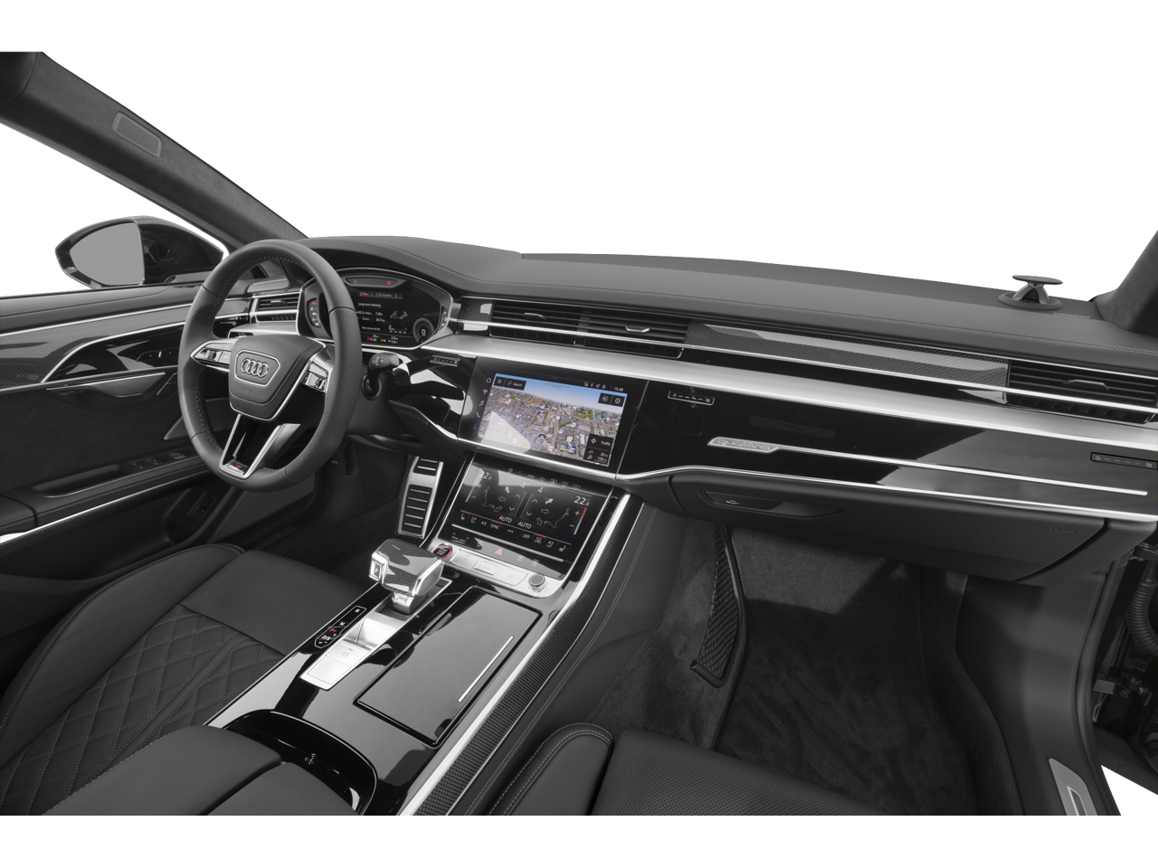 Backup Camera, Android Auto/Apple Car Play, Bluetooth®, Alloy Wheels, Audio Package, Climate Package, Comfort Package, GPS / NAVI / NAVIGATION, Heat Package, Leather Seats, Light Package, Moonroof, Navigation System, NON SMOKER, Power Mirror Package, Power Package, Security Package, Sound Package, S8 4.0T quattro, 4D Sedan, 4.0L V8 Turbocharged DOHC 32V LEV3-ULEV125 563hp, 8-Speed Automatic with Tiptronic, quattro, Daytona Gray Pearl Effect, Black w/Valcona Leather Seat Upholstery, 17 Speakers, 22-Way Power Front Comfort Sport Seats, 4-Wheel Disc Brakes, ABS brakes, Adaptive Cruise Assist w/Lane Guidance, Adaptive suspension, Air Conditioning, Alloy wheels, AM/FM radio: SiriusXM, Audi First Aid Kit (DISC), Audi Guard All-Weather Mats, Audi Side Assist w/Pre Sense Rear, Audi smartphone interface (Apple CarPlay/Android Auto), Auto High-beam Headlights, Auto tilt-away steering wheel, Auto-dimming door mirrors, Auto-dimming Rear-View mirror, Auto-leveling suspension, Automatic temperature control, Bang & Olufsen Premium Sound System w/3D Sound, Black Audi Rings & Badges, Black Dinamica Headliner, Black Exterior Mirror Housings, Brake assist, Bumpers: body-color, Compass, Delay-off headlights, Digital Matrix-Design LED Headlights, Door auto-latch, Driver door bin, Driver vanity mirror, Dual front impact airbags, Dual front side impact airbags, Electronic Stability Control, Emergency communication system: Audi connect CARE, PRIME & PLUS, Extended Leather Package, Four wheel independent suspension, Front anti-roll bar, Front Bucket Seats, Front Center Armrest w/Storage, Front dual zone A/C, Front reading lights, Garage door transmitter: HomeLink, Head restraints memory, Head-Up Display, Headlight cleaning, Heated door mirrors, Heated front seats, Heated Rear Outboard Seats, Heated steering wheel, High-Gloss Black Exterior Elements, HVAC memory, Illuminated entry, Intersection Assist, Knee airbag, Leather steering wheel, Low tire pressure warning, Memory seat, Navigation system: MMI Navigation plus, Occupant sensing airbag, Outside temperature display, Overhead airbag, Overhead console, Panic alarm, Passenger door bin, Passenger vanity mirror, Piano Black Interior Package, Power 2nd-Row Moonroof, Power adjustable front head restraints, Power door mirrors, Power driver seat, Power moonroof, Power passenger seat, Power steering, Power windows, Predictive Active Suspension, Radio data system, Radio: Audi MMI Nav Plus w/MMI Touch Response, Rain sensing wipers, Rear air conditioning, Rear anti-roll bar, Rear dual zone A/C, Rear fog lights, Rear reading lights, Rear seat center armrest, Rear side impact airbag, Rear Window Blind, Rear window defroster, Remote keyless entry, Remote Park Assist Plus, Rr Load Sill/Dr Cup/Dr Edge Pnt Protection (DISC), S8 Black Optic Plus Package, S8 Comfort Plus Package, S8 Executive Package, Seatbelt memory, Security system, Speed control, Speed-sensing steering, Speed-Sensitive Wipers, Steering wheel memory, Steering wheel mounted audio controls, Tachometer, Telescoping steering wheel, Tilt steering wheel, Traction control, Traffic Sign Recognition, Trip computer, Turn signal indicator mirrors, Valcona Leather Seat Upholstery, Variably intermittent wipers, Ventilated front seats. Daytona Gray Pearl Effect 2023 Audi S8 4.0T quattro quattro 8-Speed Automatic with Tiptronic 4.0L V8 Turbocharged DOHC 32V LEV3-ULEV125 563hp
