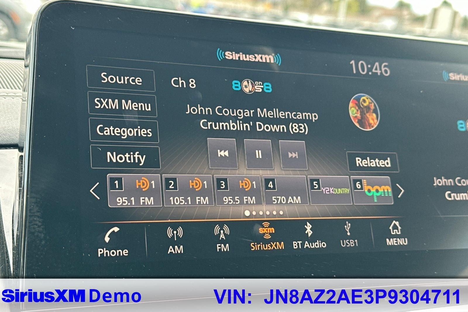 This 2023 Moonstone White INFINITI QX80 Premium Select 4WD is well equipped and includes these features and benefits: Cargo Package (Cargo Net, Carpeted Cargo Mat, Center Console Tray, Console Net, and First-Aid Kit), QX80 Premium Select, INFINITI Certified Pre-Owned Certified, 4D Sport Utility, 5.6L V8, 7-Speed Automatic, 4WD, Moonstone White, 13 Speakers, 2.937 Axle Ratio, 3rd row seats: split-bench, 4-Wheel Disc Brakes, ABS brakes, Alloy wheels, AM/FM radio: SiriusXM, Anti-whiplash front head restraints, Auto High-beam Headlights, Auto tilt-away steering wheel, Auto-dimming Rear-View mirror, Brake assist, Compass, Delay-off headlights, Driver door bin, Driver vanity mirror, Dual front impact airbags, Dual front side impact airbags, Electronic Stability Control, Emergency communication system: INFINITI InTouch, Front anti-roll bar, Front fog lights, Front reading lights, Fully automatic headlights, Garage door transmitter: HomeLink, Heated Front Bucket Seats, Heated front seats, Heated steering wheel, Illuminated entry, INFINITI Radiant Illuminated Kick Plates, Leather-Appointed Seats, Literature Kit, Low tire pressure warning, Memory seat, Navigation system: INFINITI InTouch Navigation, Occupant sensing airbag, Overhead airbag, Passenger door bin, Power door mirrors, Power driver seat, Power Liftgate, Power moonroof, Premium audio system: Bose, Premium Select Sahara Stone Interior, Radio data system, Radio: Bose Premium Audio System w/13 Speakers, Rain sensing wipers, Rear anti-roll bar, Rear window wiper, Spoiler, Turn signal indicator mirrors, Variably intermittent wipers, Wheels: 22 x 8.0 Dark Chrome Cast Aluminum-Alloy, Air Conditioning, Auto-dimming door mirrors, Auto-leveling suspension, Automatic temperature control, Bumpers: body-color, Four wheel independent suspension, Front Bucket Seats, Front Center Armrest, Front dual zone A/C, Heated door mirrors, Leather Shift Knob, Leather steering wheel, Midyear Change, Outside temperature display, Overhead console, Panic alarm, Passenger vanity mirror, Power passenger seat, Power steering, Power windows, Rear air conditioning, Rear reading lights, Rear seat center armrest, Rear window defroster, Reclining 3rd row seat, Remote keyless entry, Security system, Speed control, Speed-sensing steering, Split folding rear seat, Steering wheel memory, Steering wheel mounted audio controls, Tachometer, Telescoping steering wheel, Tilt steering wheel, Traction control, Trip computer, and Voltmeter.