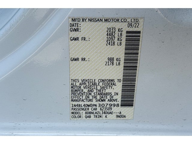 This 2023 Pearl White Tricoat Nissan Altima 2.5 SV AWD is well equipped and includes these features and benefits: SV Premium Package (Active Ride Control (ARC), Body-Colored Outside Mirrors, Electronic Parking Brake w/Auto-Hold, Exhaust Finishers, Heated Front Seats, Intelligent Cruise Control w/Full Spd Range & Hold, Intelligent Lane Intervention (I-LI), Intelligent Trace Control (I-TC), Leather Shift Knob, Leather Steering Wheel, NissanConnect, Premium Interior Finishers, ProPILOT Assist, Single Panel Moonroof, Steering Assist, and Traffic Sign Recognition), Altima 2.5 SV, 4D Sedan, 2.5L 4-Cylinder DOHC 16V, CVT with Xtronic, AWD, Pearl White Tricoat, Gray Cloth, 17 Machined Alloy Wheels, 4-Wheel Disc Brakes, 6 Speakers, ABS brakes, Air Conditioning, Alloy wheels, AM/FM radio: SiriusXM, Auto High-beam Headlights, Blind Spot Warning, Body-Colored Splash Guards, Brake assist, Bumpers: body-color, Chrome Bumper Protector, Cloth Seat Trim, Delay-off headlights, Driver door bin, Driver vanity mirror, Dual front impact airbags, Dual front side impact airbags, Electronic Stability Control, Floor Mats/Trunk Mat/Hideaway Net, Four wheel independent suspension, Front anti-roll bar, Front Bucket Seats, Front Center Armrest, Front reading lights, Fully automatic headlights, Illuminated entry, Knee airbag, Low tire pressure warning, NissanConnect featuring Apple CarPlay and Android Auto, Occupant sensing airbag, Outside temperature display, Overhead airbag, Overhead console, Panic alarm, Passenger door bin, Passenger vanity mirror, Power door mirrors, Power driver seat, Power steering, Power windows, Radio data system, Radio: AM/FM Audio System, Rear anti-roll bar, Rear Parking Sensors, Rear reading lights, Rear seat center armrest, Rear side impact airbag, Rear window defroster, Remote keyless entry, Security system, Speed control, Speed-sensing steering, Speed-Sensitive Wipers, Split folding rear seat, Steering wheel mounted audio controls, Tachometer, Telescoping steering wheel, Tilt steering wheel, Traction control, Trip computer, Trunk Organizer Tray, and Variably intermittent wipers.