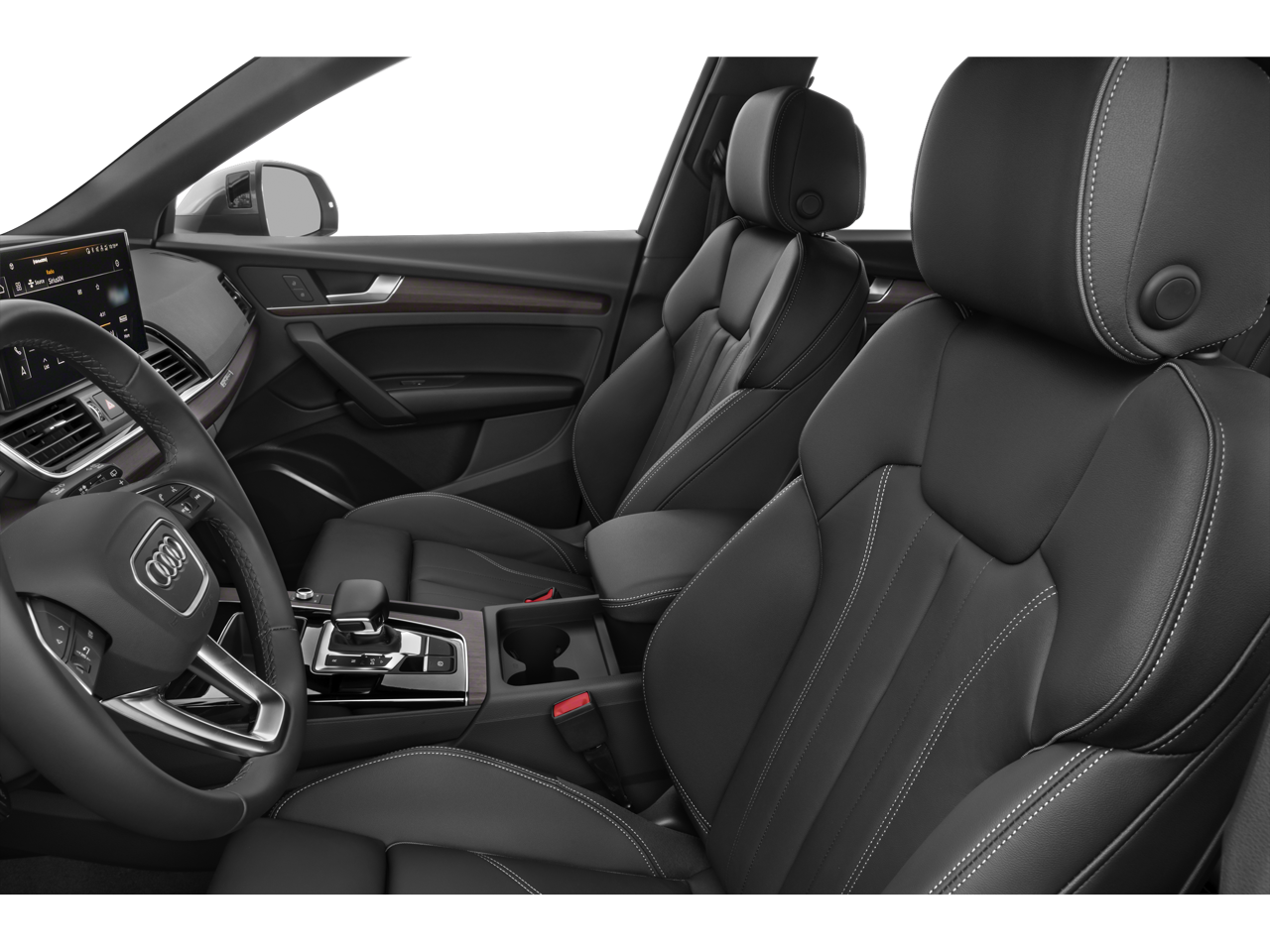 This 2024 Audi Q5 45 S line Premium AWD is well equipped and includes these features and benefits: Leather, 10 Speakers, 4-Wheel Disc Brakes, 5.302 Axle Ratio, ABS brakes, Air Conditioning, Alloy wheels, AM/FM radio, Auto High-beam Headlights, Auto-dimming Rear-View mirror, Automatic temperature control, Brake assist, Bumpers: body-color, Compass, Delay-off headlights, Driver door bin, Driver vanity mirror, Dual front impact airbags, Dual front side impact airbags, Electronic Stability Control, Emergency communication system: Audi connect CARE, Exterior Parking Camera Rear, Four wheel independent suspension, Front anti-roll bar, Front Bucket Seats, Front Center Armrest, Front dual zone A/C, Front fog lights, Front reading lights, Garage door transmitter: HomeLink, Genuine wood console insert, Genuine wood dashboard insert, Genuine wood door panel insert, Heated 8-Way Power Front Bucket Seats, Heated door mirrors, Heated front seats, Heated steering wheel, Illuminated entry, Leather Seating Surfaces, Leather Shift Knob, Leather steering wheel, Low tire pressure warning, Occupant sensing airbag, Outside temperature display, Overhead airbag, Overhead console, Panic alarm, Passenger door bin, Passenger vanity mirror, Power door mirrors, Power driver seat, Power Liftgate, Power passenger seat, Power steering, Power windows, Radio data system, Radio: Audi Sound System, Rain sensing wipers, Rear air conditioning, Rear anti-roll bar, Rear fog lights, Rear reading lights, Rear seat center armrest, Rear window defroster, Rear window wiper, Remote keyless entry, Roof rack, Security system, Speed control, Speed-sensing steering, Speed-Sensitive Wipers, Split folding rear seat, Spoiler, Steering wheel mounted audio controls, Tachometer, Telescoping steering wheel, Tilt steering wheel, Traction control, Trip computer, Turn signal indicator mirrors, Variably intermittent wipers, and Wheels: 18 5-Arm-Turbine Design. Leather.