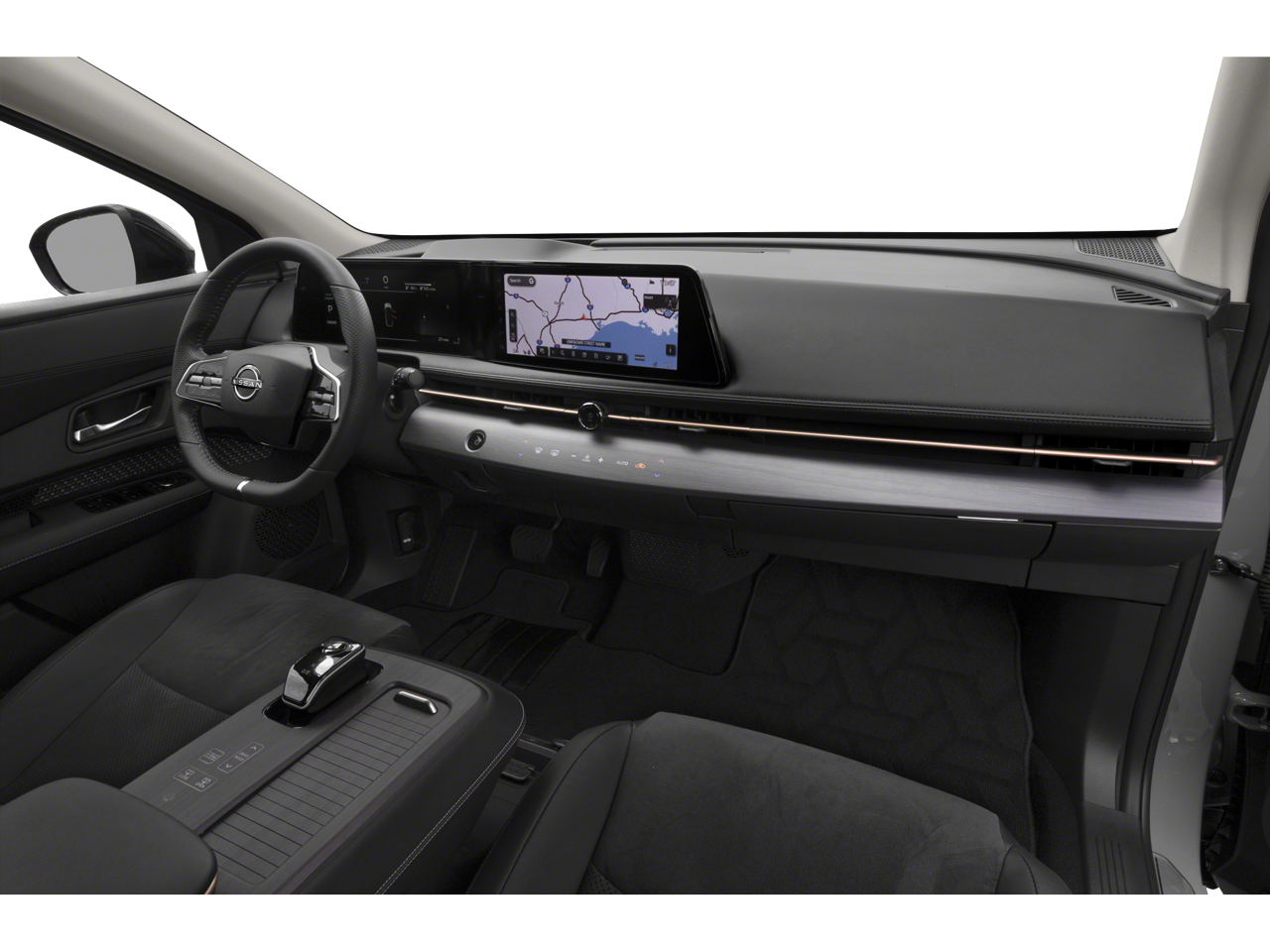 This 2024 Boulder Gray Pearl/Black Diamond Pearl Nissan Ariya EVOLVE+ FWD is well equipped and includes these features and benefits: Ariya EVOLVE+, Nissan Certified Certified, 4D Sport Utility, Electric Motor, FWD, Boulder Gray Pearl/Black Diamond Pearl, Charcoal Artificial Leather, 19 Alloy Wheels, 4-Wheel Disc Brakes, 6 Speakers, ABS brakes, Air Conditioning, Alloy wheels, AM/FM radio: SiriusXM, Auto High-beam Headlights, Automatic temperature control, Brake assist, Bumpers: body-color, Carpeted Floor Mats & First Aid Kit, Delay-off headlights, Driver door bin, Driver vanity mirror, Dual front impact airbags, Dual front side impact airbags, Electronic Stability Control, Emergency communication system: NissanConnect EV & Services, Four wheel independent suspension, Front anti-roll bar, Front Bucket Seats, Front Center Armrest, Front dual zone A/C, Front fog lights, Front reading lights, Garage door transmitter: HomeLink, Heads-Up Display, Heated door mirrors, Heated Front Bucket Seats, Heated front seats, Heated rear seats, Heated steering wheel, Illuminated entry, Illuminated Kick Plates, Knee airbag, Leather steering wheel, Leatherette Seating Surfaces, Low tire pressure warning, Memory seat, Navigation system: Nissan Door to Door Connected Navigation, Occupant sensing airbag, Outside temperature display, Overhead airbag, Panic alarm, Passenger door bin, Passenger vanity mirror, Power door mirrors, Power driver seat, Power Liftgate, Power moonroof, Power passenger seat, Power steering, Power windows, Radio: AM/FM Audio System, Rain sensing wipers, Rear anti-roll bar, Rear reading lights, Rear seat center armrest, Rear side impact airbag, Rear window defroster, Rear window wiper, Remote keyless entry, Security system, Speed control, Speed-sensing steering, Speed-Sensitive Wipers, Split folding rear seat, Spoiler, Steering wheel mounted audio controls, Telescoping steering wheel, Tilt steering wheel, Traction control, Trip computer, and Variably intermittent wipers.