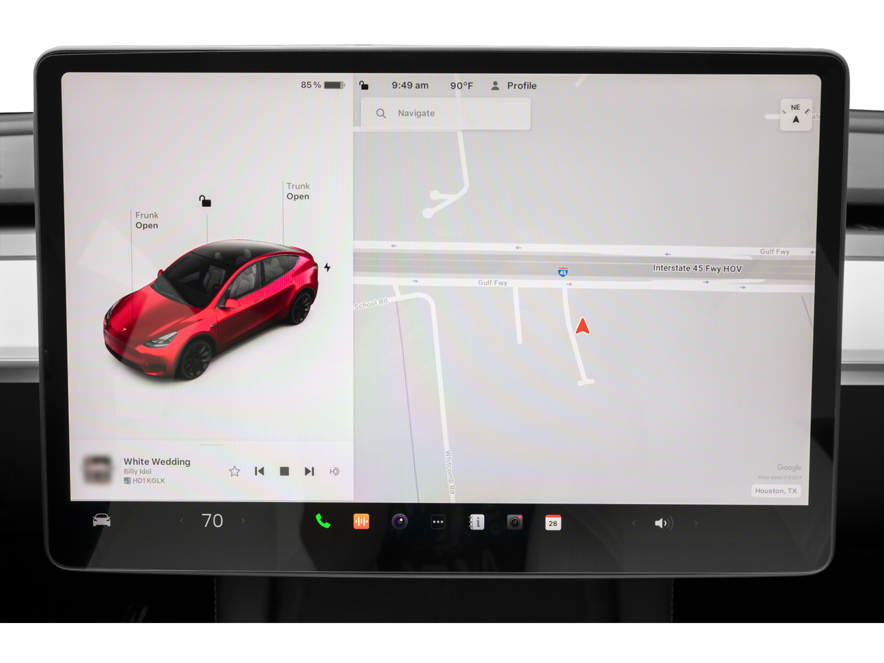Backup Camera, Bluetooth®, Alloy Wheels, Audio Package, Climate Package, Comfort Package, GPS / NAVI / NAVIGATION, Heat Package, Leather Seats, Light Package, Navigation System, NON SMOKER, One Owner Carfax, Power Mirror Package, Power Package, Security Package, Sound Package, Model Y Long Range, 4D Sport Utility, Electric Motor, 1-Speed Automatic, AWD, Solid Black, Black w/Vegan Leather Seat Trim, 14 Speakers, 4-Wheel Disc Brakes, 5 Seat Interior, 9.0 Axle Ratio, ABS brakes, Air Conditioning, Alloy wheels, Audio memory, Auto High-beam Headlights, Auto tilt-away steering wheel, Auto-dimming door mirrors, Auto-dimming Rear-View mirror, Automatic temperature control, Brake assist, Bumpers: body-color, Compass, Delay-off headlights, Driver door bin, Driver vanity mirror, Dual front impact airbags, Dual front side impact airbags, Electronic Stability Control, Emergency communication system, Exterior Parking Camera Rear, Four wheel independent suspension, Front anti-roll bar, Front Bucket Seats, Front Center Armrest, Front dual zone A/C, Front reading lights, Fully automatic headlights, Heated door mirrors, Heated front seats, Heated rear seats, HVAC memory, Illuminated entry, Knee airbag, Lane Departure Warning System, Low tire pressure warning, Memory seat, Navigation System, Occupant sensing airbag, Outside temperature display, Overhead airbag, Passenger door bin, Passenger vanity mirror, Power door mirrors, Power driver seat, Power Liftgate, Power passenger seat, Power steering, Power windows, Radio data system, Radio: Premium Audio System w/13 Speakers, Rain sensing wipers, Rear reading lights, Rear seat center armrest, Rear window defroster, Security system, Speed control, Speed-sensing steering, Split folding rear seat, Steering wheel memory, Steering wheel mounted A/C controls, Steering wheel mounted audio controls, Telescoping steering wheel, Tilt steering wheel, Traction control, Trip computer, Variably intermittent wipers, Vegan Leather Seat Trim. CARFAX One-Owner. Solid Black 2024 Tesla Model Y Long Range AWD 1-Speed Automatic Electric Motor