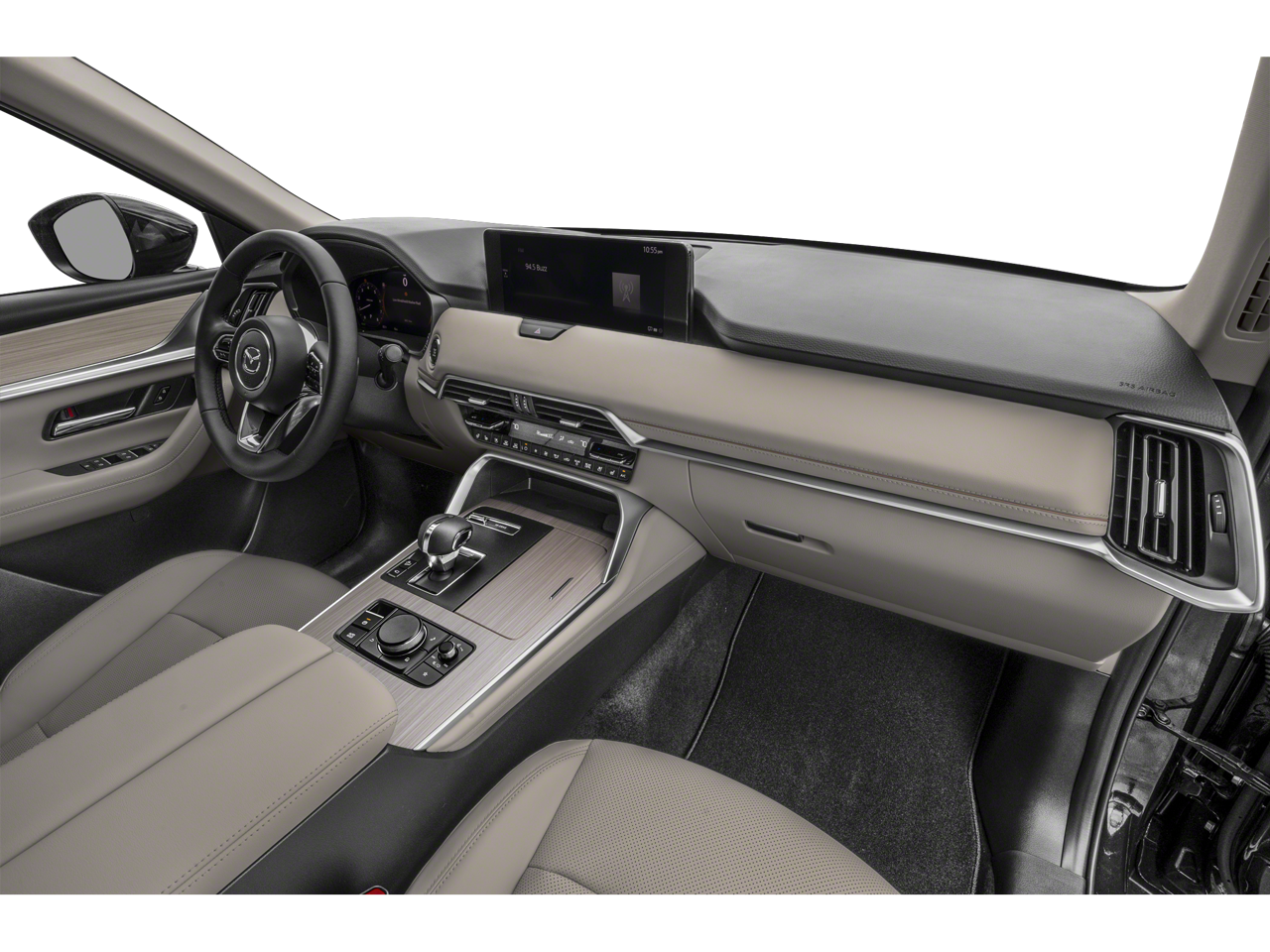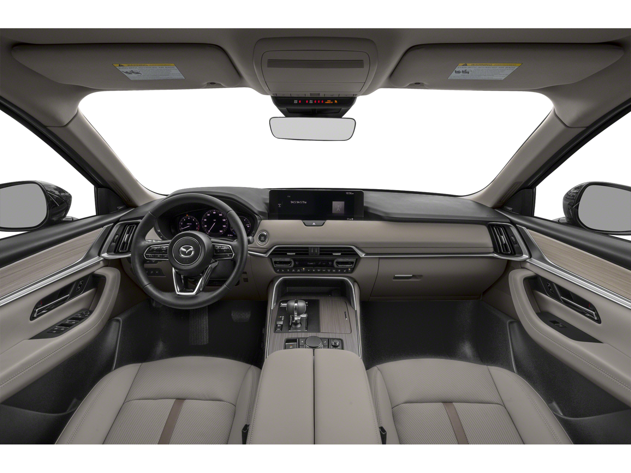 This 2025 Jet Black Mica Mazda CX-90 3.3 Turbo Premium Plus AWD is well equipped and includes these features and benefits: CX-90 3.3 Turbo Premium Plus, 4D Sport Utility, I6 Turbo, 8-Speed Automatic, AWD, Jet Black Mica, Black Leather, 12 Speakers, 3rd row seats: bench, 4-Wheel Disc Brakes, ABS brakes, Air Conditioning, Alloy wheels, AM/FM radio: SiriusXM, Auto High-beam Headlights, Auto-dimming door mirrors, Automatic temperature control, Brake assist, Bumpers: body-color, Compass, Delay-off headlights, Driver door bin, Driver vanity mirror, Dual front impact airbags, Dual front side impact airbags, E911 Automatic Emergency Notification, Electronic Stability Control, Emergency communication system: MAZDA CONNECT, Four wheel independent suspension, Front anti-roll bar, Front Bucket Seats, Front Center Armrest w/Storage, Front dual zone A/C, Front reading lights, Fully automatic headlights, Garage door transmitter: HomeLink, Heads-Up Display, Heated door mirrors, Heated front seats, Heated rear seats, Heated steering wheel, Heated/Ventilated Front Bucket Seats, Illuminated entry, Infotainment System Voice Command, Knee airbag, Leather Shift Knob, Leather steering wheel, Low tire pressure warning, Mazda Connected Services, Mazda Navigation System, Memory seat, Nappa Leather Seat Trim, Navigation system: MAZDA CONNECT, Occupant sensing airbag, Outside temperature display, Overhead airbag, Overhead console, Pandora Internet Radio Integration, Panic alarm, Passenger door bin, Passenger vanity mirror, Power door mirrors, Power driver seat, Power Liftgate, Power moonroof, Power passenger seat, Power steering, Power windows, Radio Broadcast Data System Program Information, Radio data system, Radio: AM/FM w/HD/Bose 12-Speaker Sound System, Rain sensing wipers, Rear air conditioning, Rear anti-roll bar, Rear reading lights, Rear window defroster, Rear window wiper, Remote keyless entry, Security system, SMS Text Msg Audio Delivery & Reply, Speed control, Speed-sensing steering, Split folding rear seat, Spoiler, Steering wheel mounted audio controls, Tachometer, Telescoping steering wheel, Tilt steering wheel, Traction control, Trip computer, Turn signal indicator mirrors, Variably intermittent wipers, Ventilated front seats, and Wheels: 21 x 9.5J Aluminum Alloy.
